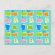Cette carte postale kitsch atomique rétro présente tant de formes kitsch et tant de motifs kitsch. Le motif d'inspiration Palm Springs présente un arrière - plan turquoise et des oodles de magnifiques dessins à la ligne des années 60. C’est presque trop mignon pour être décrit ! Une vintage forme rose dispose d'une remorque rétro et d'une voiture. Un bloc jaune comporte une boîte à juke. Une forme bleue présente une femme sophistiquée portant un martini. Un espace vert en forme d'âge abrite une horloge d'entrée et un téléviseur classique. Un bloc de chaux a un chat et un joueur de disque moderne du milieu du siècle. Et une forme orange est ornée d'une voiture à finition classique et d'une enseigne de diner au bord de la route. Qu’est-ce qui ne doit pas aimer ?