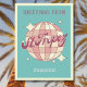 Saint St Tropez France, conception rétro vintage avec une boule à facettes rose et des tons pêche abricot. Cette belle carte postale est une carte de vœux parfaite pour les résidents de Saint St Tropez, les visiteurs, les touristes ou les fans.