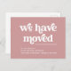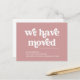 Ce faire-part à la mode et boho dit "nous avons bougé" dans la typographie blanche rétro sur un arrière - plan rose rose simple et poussiéreux. La façon parfaitement élégante de faire savoir à vos amis et à votre famille que vous avez une nouvelle maison.