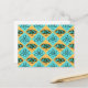 Ce design de carte postale de Trotter Retro Harlequin Globe présente un motif répétitif d'un globe ovale abstrait avec des continents à grains de bois et des symboles atomiques. Les océans du globe vintage sont dans les tons turquoises et turquoise. Le globe est sur un socle en bois triangulaire et le monde entier est sur un arrière - plan de couleur blé. Les symboles atomiques sont sur un arrière - plan turquoise. Ce design est kitschy, la bonté d'âge de l'espace à son meilleur !