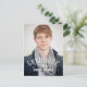 Modern Graduation Party Invitation Carte postale pour les diplômés masculins avec un design simple avec typographie rétro texte blanc superposition. Elke Clarke © pour MonogramGallery. Customisez avec vos informations générales en sélectionnant "customisez-le" ou utilisez les invites du menu modèle. Échangez l'échantillon pour votre propre photo.