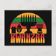 Retro 60-70 sentir Kwanzaa avec un Kinara, tasse d'unité, maïs, et cadeau en or, vert, rouge et noir.