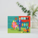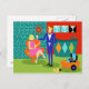 Cette carte postale Retro Martini Couple ressemble à une scène d'une comédie romantique. Le cadre de ce style des années 60, design minimaliste, est une maison ou un appartement moderne élégamment décoré du milieu du siècle. La troupe est un couple séduisant qui profite d'une soirée remplie de conversations étincelantes, de bonne musique et de boissons sans fond. La salle est dotée d'un sol vert et d'un aqua et d'un mur turquoise en briques. Se reposant confortablement dans un mod, chaise d'oeuf orange est une belle femme. Sa robe rose vif est juste assez courte pour montrer ses jeux de forme. Avec la vague d'une main, cette beauté blonde a l'attention immédiate de son admirateur masculin. Son compagnon aux cheveux clairs porte un costume bleu, une chemise blanche et une cravate à arc noir. Dans ses mains, il tient deux lunettes de martini cristallin aux olives flottantes. Ne vous inquiétez pas. Il en offre une à sa copine. La paire a un temps si délicieux que ni l'un ni l'autre ne prend note de l'heure qui apparaît sur l'horloge kitschy, rouge, starburst sur le mur de brique derrière eux. Sur un mur rouge vif encastré, il y a trois Classic Movie Martini Stretched Canvas Prints, également disponible à la boutique Zazzle de StrangeLittleOnion (conseil, conseil!) Deux des tirages sont des arrière - plans turquoise et un est sur un arrière - plan noir dramatique. Un élégant bar humide est placé sous les empreintes. L'avant du bar turquoise présente trois diamants arlequins, dans les tons orange, turquoise et vert. On peut voir les silhouettes de lunettes à martini posées sur le comptoir. De l'autre côté de la pièce, un ottoman orange tient un lecteur de disques portable bleu et noir. Au sol, on voit les disques vinyles et une pochette d'album jaune vif. Ce duo séduisant est tellement délicieux que ni l'un ni l'autre ne prend note de l'heure qui apparaît sur l'horloge kitschy, rouge, starburst sur le mur de briques derrière eux.