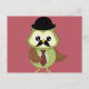 Carte Postale Rétro Owl avec Casquette, cravate et Moustache