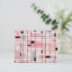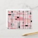 Cette carte postale Retro Pink Grid et Starbursts est l'endroit où le style vintage se marie à la modernité. Il présente un arrière - plan rose pâle avec kitschy, des carrés de kilter et des rectangles en gris colombe et trois nuances de rose. Les blocs blancs de couleur sont superposés et travaillés dans certaines intersections de grille. Il y a aussi des rectangles noirs avec des lignes verticales et horizontales noires formant un motif de grille. Les créations de starburst noir et les carrés sont placés sporadiquement tout au long de cette tapisserie moderne de couleur du milieu du siècle. Ce design présente les couleurs roses les plus communes que l'on retrouve dans les salles de bain vintages. Attrapez vos bottes de départ et vos clochers et profitez de ce retour aux années 1960.