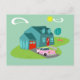 Ce motif de carte postale de la maison de banlieue rétro est une maison américaine typique située dans un quartier américain typique, vers 1950. Une maison turquoise au toit bleu paon et aux fenêtres turquoise sont parfaitement compensées par une porte d'entrée rouge vif et une porte de garage. Une voiture convertible à finition rose classique des années 1950 est garée sur l'allée pittoresque. Kitschy, plastique, flamants roses regardent à la maison sur la forme boomerang de l'herbe verte fraîchement tondue reposant sur un arrière - plan de jade. La pelouse manucurée est aménagée avec des arbres à bulles. Des nuages en forme de haricot et un coup de soleil jaune vous font savoir que ce n’est qu’un autre jour glorieux dans les banlieues modernes du milieu du siècle.