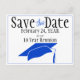 Envoyez cette carte postale d'annonce de modèle "Enregistrez la date" bleue et noire avec code QR pour votre réunion de classe. Personnalisez le texte dans les champs de modèle pour l'avant et l'arrière, ajoutez le lien approprié pour votre code QR ou modifiez-le à l'aide de l'outil de conception pour sélectionner un style de police, une taille et une couleur de votre choix.