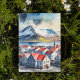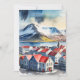Cette carte postale présente un portrait en aquarelle de Reykjavik, en Islande.