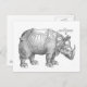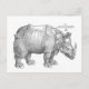 Le rhinocéros d'Albrecht Dürer est une coupe de bois qu'il a basée sur une description écrite et une brève esquisse d'un artiste inconnu d'un rhinocéros indien arrivé à Lisbonne plus tôt cette année-là. Dürer n'a jamais vu le rhinocéros actuel, qui fut le premier exemple vivant vu en Europe depuis l'époque romaine. À la fin de 1515, le roi du Portugal, Manuel I, envoya l'animal comme cadeau pour le pape Léon X, mais il mourut dans un naufrage au large des côtes italiennes au début de 1516. Un rhinocéros vivant n'a pas été revu en Europe avant qu'un deuxième spécimen ne soit arrivé d'Inde à la cour de Philippe II en Espagne vers 1579.[2][3] La coupe de bois de Dürer n'est pas une représentation exacte d'un rhinocéros. Il représente un animal avec des plaques dures qui recouvrent son corps comme des feuilles d'armure, avec un gorget à la gorge, une plaque à l'allure solide, et des rivets le long des coutures, et une petite corne tordue sur le dos, des jambes écailleuses et des quartiers arrière semblables à des scies.