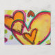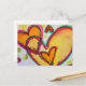 Les coeurs de pêche et d'orange se connectent comme des bulles qui dérivent ensemble. Un contour vert trace chaque coeur. Les points de couleur jaune pâle sont comme des confettis entre les coeurs. La peinture à l'aquarelle a une légère couche d'or et de rose sur le dessus. Customisez cette carte postale avec vos textes et images personnels !