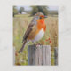 Un design d'art tout simplement époustouflant Image d'adorable Robin assis sur la clôture. Cette carte postale égayerait la journée de n'importe qui pour n'importe quelle occasion. La faune à son meilleur.