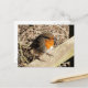 Un mignon petit rouge européen assis sur une clôture jouissant de la chaleur du soleil. Design photographique.