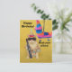 Bubba kitty en chemise hawaïenne, casquette de fête et bandeau, avec une batte et une pinata. Carte postale d'anniversaire personnalisable.