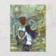 Un dessin artistique d'une fille et d'un garçon tenant la main en marchant dans les bois.