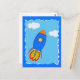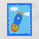 Fusée de dessin et nuages avec effet papier journal appliqués aux dessins. Design original. Cartes postales personnalisées. Version papier déchirée. Idée cadeau pour les enfants qui aiment la science-fiction et les aventures spatiales