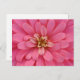 Cette carte postale comporte une photographie d'une belle fleur rose de zinnia.