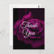 Carte de remerciement de fête avec une image en gros plan d'une rose magenta violet d'apparence gothique. Un style sombre et mystérieux.