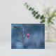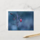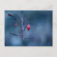 Carte postale avec photo de closeup d'un vieux fruit de rose rouge congelé, sur un arrière - plan de livre bleu. Personnalisable .