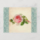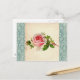 Une belle illustration rose victorienne d'une carte de visite est posée sur un arrière - plan âgé avec une bordure d'aqua ou de damas turquoise. Un beau design chic ou vintage pour une fille féminine, mais élégante, petite fille !