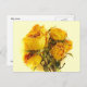 Cette belle carte postale présente une composition en natures mortes de roses séchés exquis sur un arrière - plan jaune. Les pétales sont de couleur allant du jaune pâle à l'or en passant par un abricot orange profond.