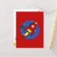 Illustration d'une mignonne fusée dans l'espace, entourée d'étoiles et d'un petit vaisseau spatial vert. Correspond également à :