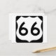 Cette conception présente le bouclier de la route américaine du domaine public pour la route 66 (également connue sous le nom de Will Rogers Highway, la rue principale de l'Amérique ou la route mère), qui était l'une des routes originales du réseau routier américain. La route 66 a été créée le 11 novembre 1926, avec des panneaux routiers érigés l'année suivante. Elle est devenue l'une des routes les plus célèbres des États-Unis, souvent référencée dans la culture populaire.