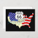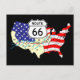 Carte postale de l'historique Route 66 avec une carte montrant son chemin à travers l'Amérique.
