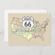 Carte postale de l'historique Route 66 avec une carte montrant son chemin à travers l'Amérique.