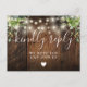 Une corde illumine le bois rustique de grange avec le boho vert carte RSVP avec la typographie chic. L'inverse vous donne vos détails et une demande amusante de chant invité. Conçu par Thisisnotme©