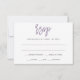 Cette carte rsvp moderne coordonne avec notre suite d'invitation à la calligraphie de brosse. La couleur du mot "rsvp" est réglée sur lavande / violet clair, mais vous pouvez le changer à tout ce que vous voulez juste en changeant la couleur arrière - plan! N'oubliez pas de remplir les informations sur le dos si vous faites des cartes postales. **COMMENT CHANGER LA COULEUR DE CONCEPTION (Le mot "RSVP")** 1) Cliquez sur le bouton "Personnaliser". 2) Cliquez sur le lien "ClICK POUR CUSTOMISER PLUS LOIN" en bas. Vous aurez alors la possibilité de changer votre "COULEUR ARRIÈRE - PLAN" en votre couleur mariage. N'oubliez pas de modifier votre couleur de texte pour qu'elle corresponde à votre conception.