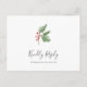 Cette carte postale RSVP est idéale pour un mariage de décembre. Le design des vacances d'hiver est composé d'une branche blanche d'aquarelle verte à la sauge douce avec des branches de baies rouges classiques. Cette carte postale de réponse mariage demande à la clientèle quel repas elle souhaite à la réception.
