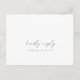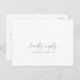 Cette carte postale RSVP est idéale pour un mariage minimaliste. Le design de couleur gris argenté simple présente une typographie industrielle unique avec un style boho moderne. Personnalisable dans n'importe quelle couleur. Gardez le design minimal et élégant, en l'état, ou personnalisez-le en ajoutant vos propres graphiques et artwork. Cette carte postale de réponse mariage demande à la clientèle quel repas elle souhaite à la réception.