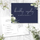 Une carte RSVP chic demande une chanson élégante avec une végétation fleurie et une typographie chic sur un arrière - plan bleu marine. L'inverse vous donne vos détails et une demande amusante de chant invité. Conçu par Thisisnotme©