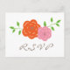Simple et fantaisiste En fleurs Floral Wedding RSVP Postcard avec une illustration avec une belle paire de fleurs en rose et orange flanquée d'un ensemble de vignes vertes vibrantes. Cette carte postale élégante de mariage est parfaite pour un mariage de printemps ou d'été. Facile à customiser, il suffit d'ajouter les détails de votre mariage dans les champs de texte fournis. Cliquez sur "Customiser" pour trouver d'autres options de personnalisation.