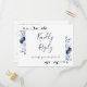 Une élégante carte RSVP marine florale couleur aquarelle avec typographie chic. L'inverse vous donne vos détails et une demande amusante de chant invité. Conçu par Thisisnotme©
