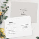 Cette carte postale RSVP mariage simple et élégante a un design minimaliste et intemporel. Utilisez les outils de conception pour le customiser et le rendre unique à vous! Pour la coordination des articles, veuillez naviguer dans notre boutique. Et s'il vous plaît contactez-nous si vous souhaitez un autre article avec ce thème que vous ne voyez pas dans notre sélection - nous serions ravis de le faire pour vous.