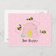 Un joli design avec une ruche rose avec trois petites abeilles occupées, un arrière - plan de rose avec des petits points blancs l'accentue. Le dicton peut être changé à volonté.