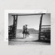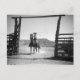 Cowboy sur l'équitation à travers une porte d'entrée tout en flânant sur le Pitchfork Ranch près de Meeteetse, Wyoming.