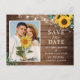 Rustic Sunflower String Lights Photo Enregistrer la date Carte postale