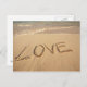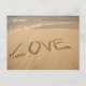 Carte Postale Sable "Love" écrit sur la plage avec l'arrivée