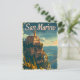 Une charmante représentation vintage de Saint-Marin, l'une des plus anciennes républiques du monde et un microÉtat entouré par l'Italie. Le design reflète l'architecture historique de l'ancienne ville de Saint-Marin située au sommet d'une colline, avec ses murs médiévaux, ses tours et ses ruelles pavées étroites. Rendu dans un style nostalgique, l'oeuvre évoque le charme intemporel et la richesse culturelle de cette enclave unique, invitant à explorer sa signification historique et ses paysages pittoresques.
