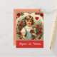 Une jolie petite fille vintage dans un jardin rose est présentée sur ce design classique de carte postale. Pour les francophones, "Joyeux St. Valentin" est un grand salut pour la Saint-Valentin. Créé par Alma Wad le designer humain en collaboration avec Canva AI.