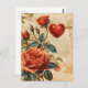 La carte postale vintage de la Saint-Valentin présente une scène intemporelle avec des roses illustrées de manière complexe entourant un cœur délicatement façonné. Les roses arborent des teintes riches, capturant l'essence de la romance, tandis que le cœur sert de point focal, orné de détails élégants. La conception globale dégage un charme classique, offrant un aperçu nostalgique des sentiments amoureux d'époques révolues.
