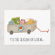 Carte de vacances en gros avec chariot à main avec illustration de cadeaux de vacances et texte "C'est la saison pour donner"