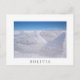 Carte postale avec séchage des tas de sel avec réflexion dans l'eau en attendant la récolte sur le Salar les salines Uyuni dans le sud de la Bolivie avec une frontière blanche et le texte : 'Bolivie'.