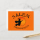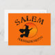 Salem Massachusetts Halloween sorcière - sorcière noire sur bâton de brosse volant à travers la lune d'halloween rouge et orange. Arrière - plan orange.