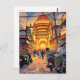 Illustration du centre-ville de Calcutta, capitale et plus grande ville de l'état indien du Bengale-Occidental. Une carte postale qui le dit depuis l'Inde avec une illustration de la rue animée du centre-ville avec des immeubles, des restaurants, des magasins et des gens sur leurs motos.