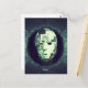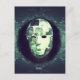 Une représentation hantante et surréaliste d'un masque fracturé suspendu dans un vide sombre et éthéré. La surface cassée et patchwork du masque reflète des textures glacées, contrastées par un monocle agité et un fil vert unique, évoquant une connexion cryptique à des forces invisibles. Sous lui, le mot simple mais glaçant "Bonjour." invitations une rencontre troublante avec l'inconnu.