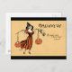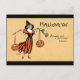 Une carte de voeux d'Halloween mignonne d'une sorcière, qui passe son balai au-dessus de ses épaules, avec des lanternes Jack o' accrochées de chaque côté du balai, comme un équilibre. La sorcière porte une robe rayée noire, noire, pointue, orange et noire, avec un corset, et des talons noirs. Elle a les cheveux blonds, attachée dans un petit bidon, et la peau claire. Elle pose comme le signe astrologique de Libra. Très mignon et simple. Sur le salut, il dit, "Halloween, un moment heureux et joyeux." Idéal pour tous ceux qui aiment Halloween, sorcières, citrouilles et cartes de voeux vintages. Consultez ma boutique, SpookingGhost, pour plus de design d'Halloween et sorcière, ou art d'Halloween vintage.