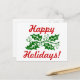 Cette carte de voeux de jour saint montre une branche verte de saint avec des baies. Personnalisez le texte en haut et en bas qui affiche par défaut "Joyeuses fêtes !" en rouge.